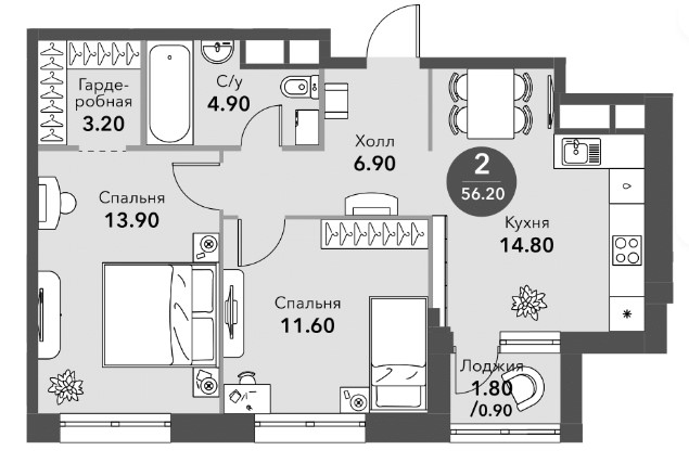 56,2 м2.