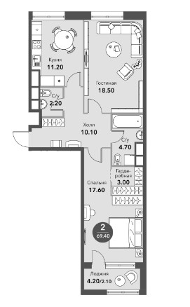 69,4 м2.