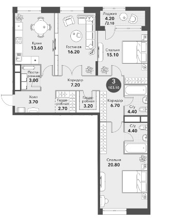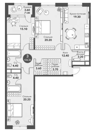 Квартира с 3-мя спальнями