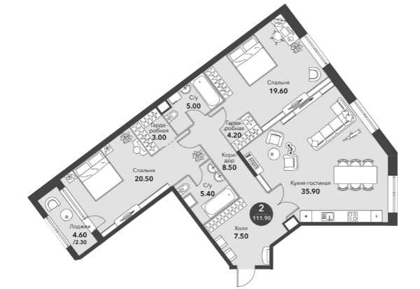 111,9 м2