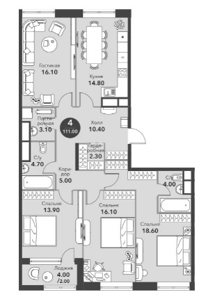Четырехкомнатная квартира